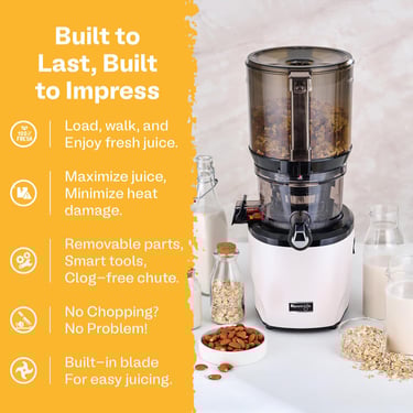 Hands-Free Juicing: Load whole fruits, close the lid, and let the juicer handle the rest. Juice entire recipes at once!
